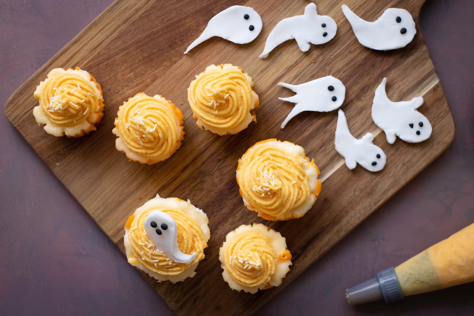 Use a small ghost cookie cutter, or cut ghost shapes freehand using a knife.